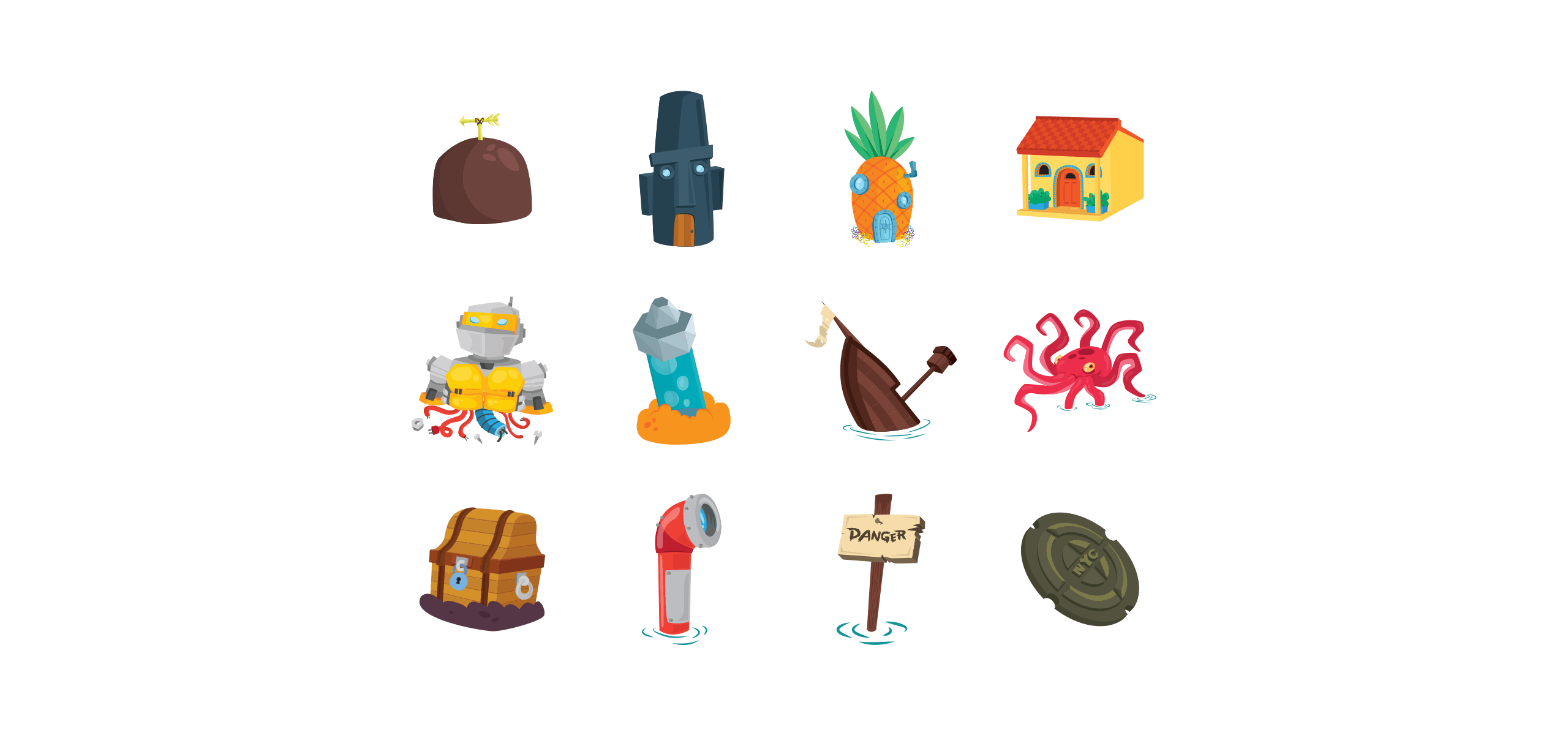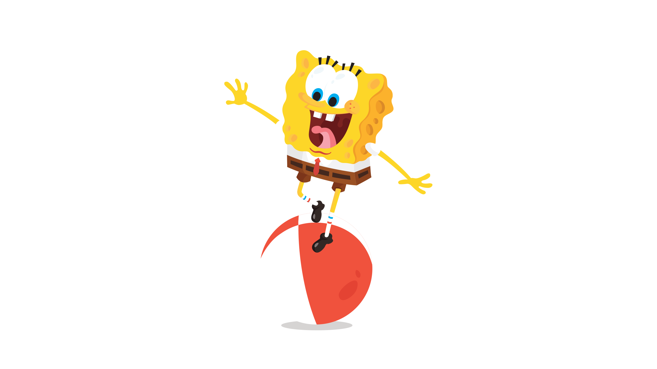 Recreating such a well-known animated character meant ensuring our design team preserved SpongeBob’s highly recognizable features and characteristics within the flat style that was set for the project. This sponge spectrum depicts reactions that reflect the character’s familiar personality as he balances his way to safety.